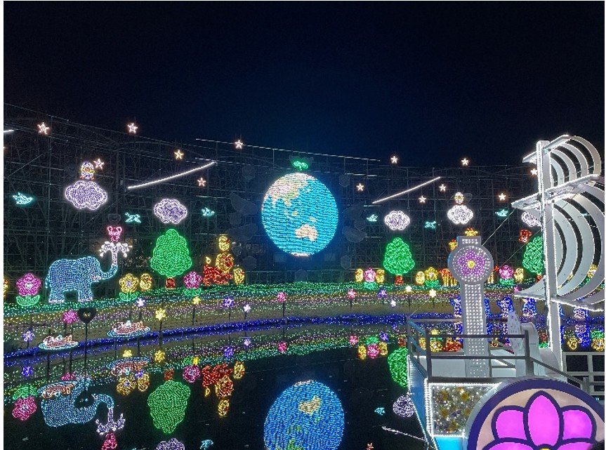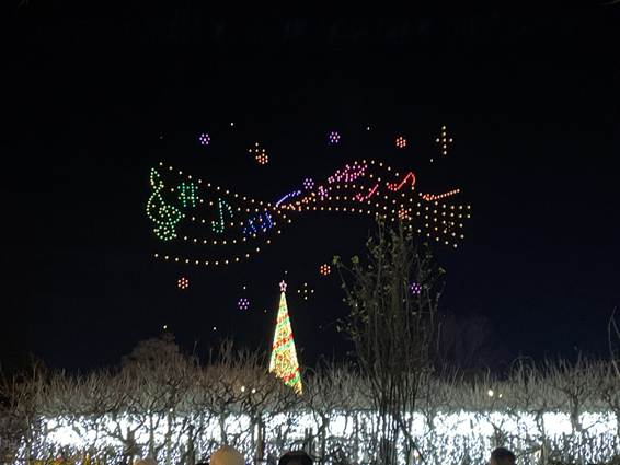園内は寒さも厳しく人出も多かったのですが、さすがにイルミネーションは見事で、訪れたかいがありました。中でも藤の花を模した薄紫色のLED群には圧倒されました。ドローンショーも見ごたえがありました。