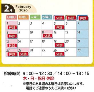 ・2026年2月の休診日のお知らせ
